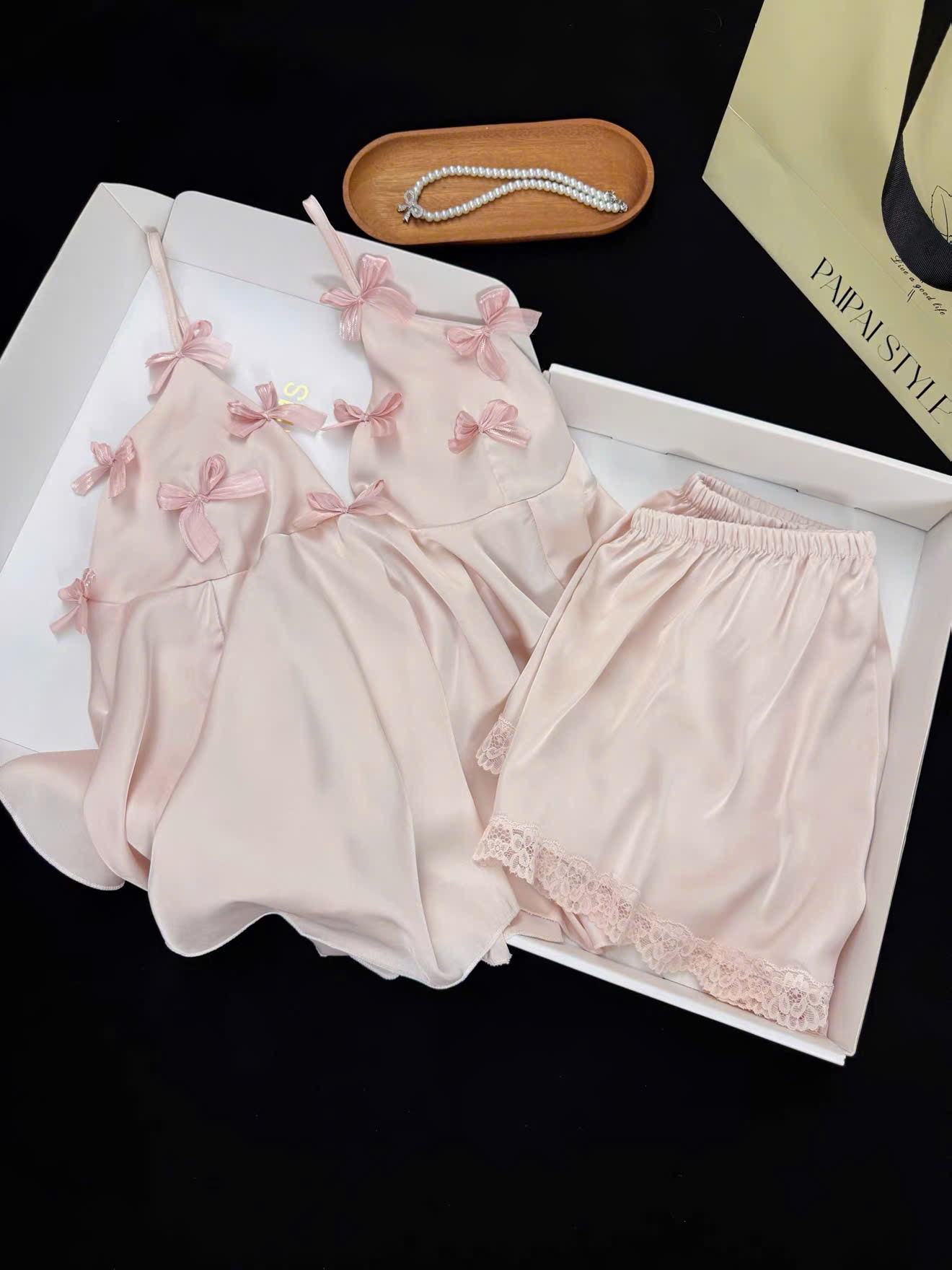 • Thiết Kế: Mẫu bộ lụa, quần ngắn. Hàng xuất chuẩn từ Form đến dáng