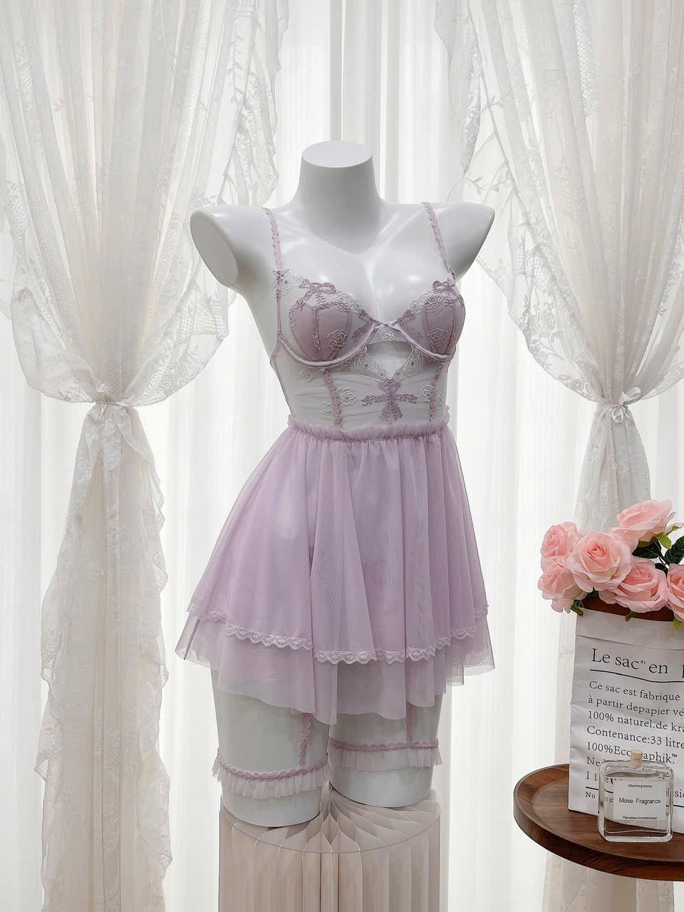 • Chất liệu: Ren mềm mịn, tạo cảm giác nữa hở nữa che.