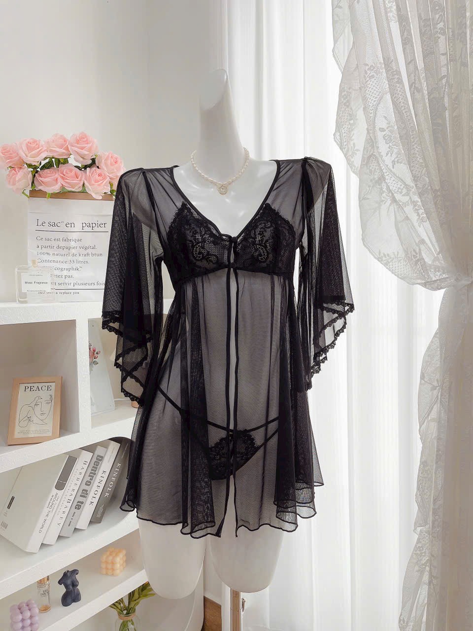 • Chất liệu: Ren mềm mịn, tạo cảm giác nữa hở nữa che.