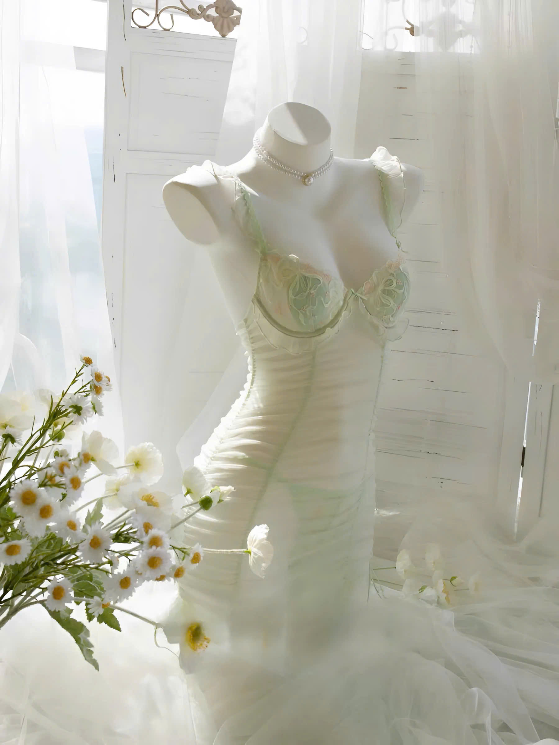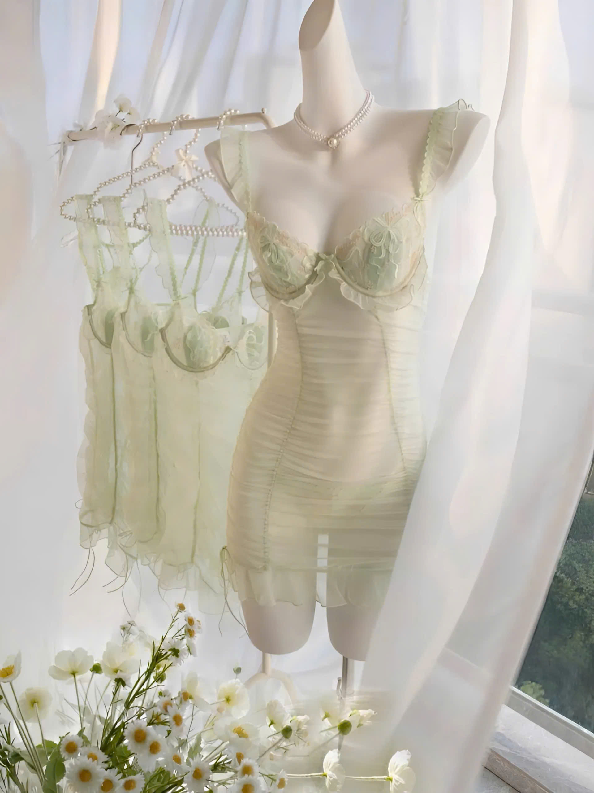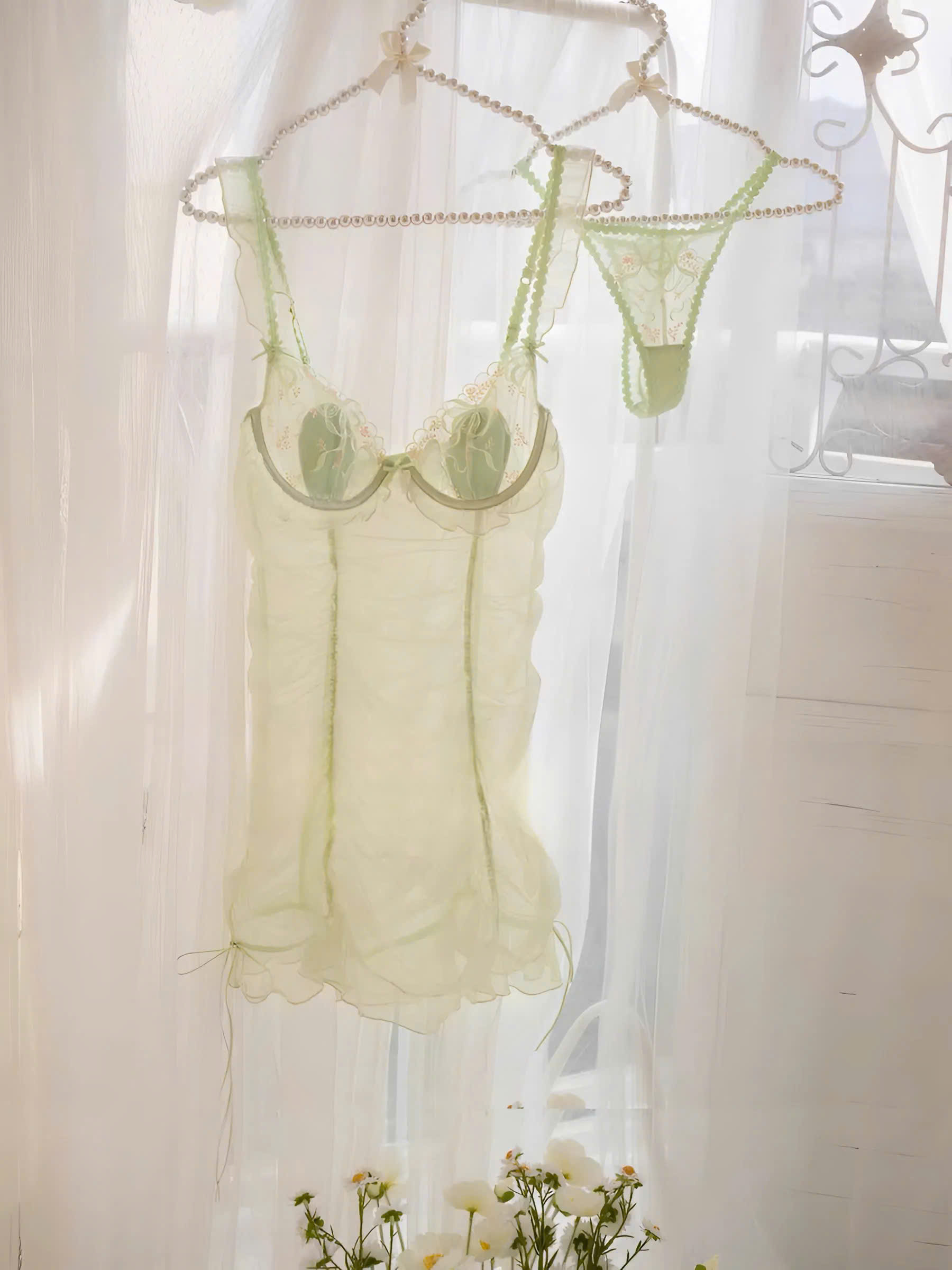 • Chất liệu: Ren mềm mịn, tạo cảm giác nữa hở nữa che.