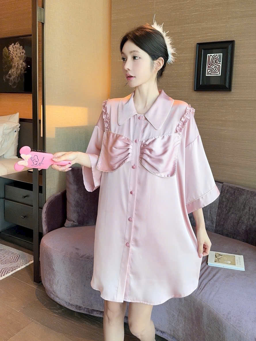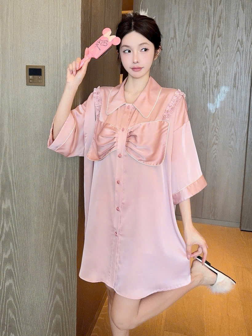 Váy Ngủ Dáng Sơmi nơ Nữ Tính
