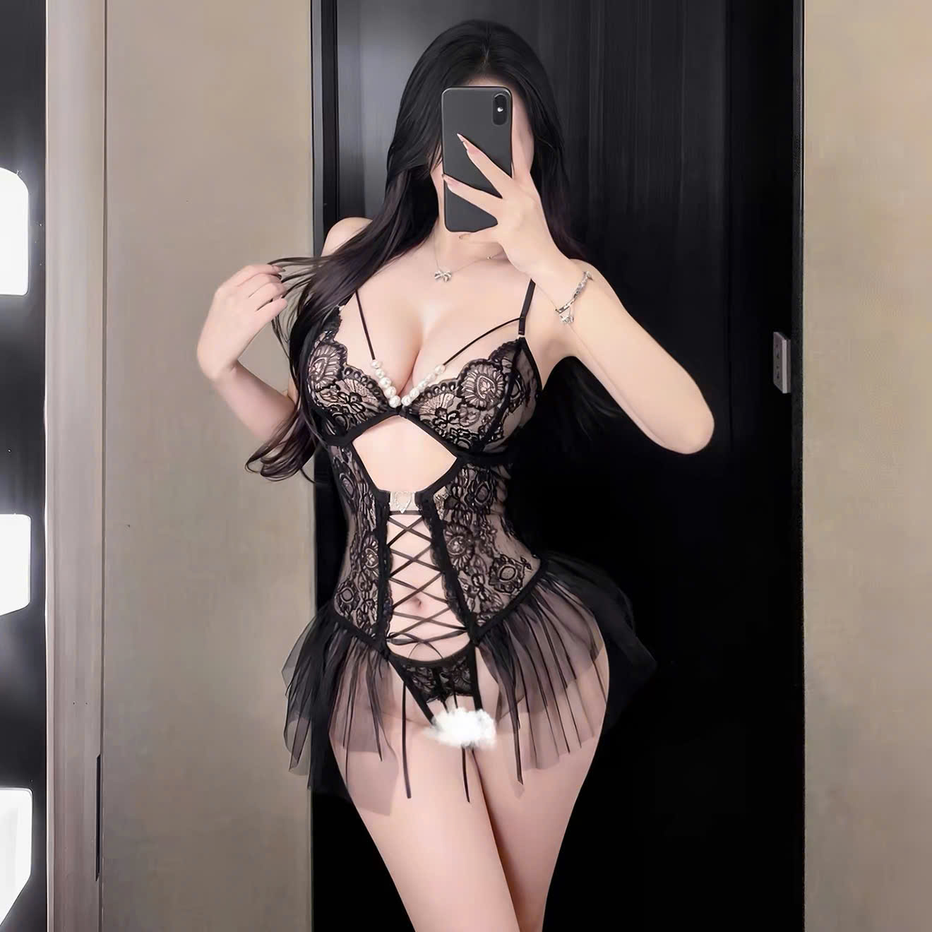 • Họa Tiết: Ren ở giữa tạo cảm giác mới mẻ nữa hỡ nữa che tăng sức hút gợi cảm hơn.
